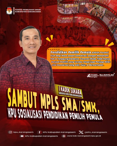 Berikut penjelasan dari Anggota KPU Kabupaten Karangasem, I Kadek Sukara terkait Pendidikan Pemilih Pemula. "Pendidikan Pemilih Pemula adalah pondasi kuat bagi masa depan Demokrasi. Dengan memahami Hak & Tanggungjawabnya, Generasi Muda tidak hanya menjadi pemilih yang cerdas, tetapi juga Penjaga Nilai-Nilai Demokrasi yang Adil, Jujur & Bermartabat".
