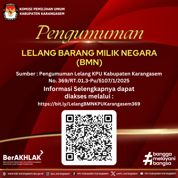 Pengumuman Lelang Barang Milik Negara (BMN) No. 369/RT.01.3- PU/5107/1/2025 Komisi Pemilihan Umum Kabupaten Karangasem