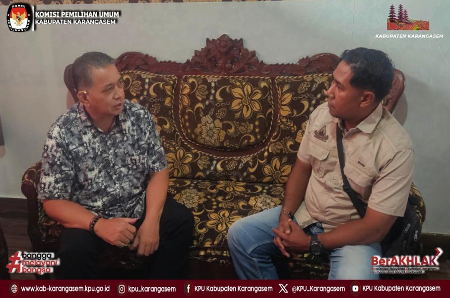 Amlapura, kab-karangasem.kpu.go.id - Komisi Pemilihan Umum Kabupaten Karangasem menerima kunjungan dari Satintelkam Kodim 1623 Karangasem di Kantor Komisi Pemilihan Umum Kabupaten Karangasem, Jl. Bhayangkara No.6 Amlapura, Karangasem, Kamis (12/2/2026). Kedatangan perwakilan Satintelkam Kodim 1623 Karangasem disambut oleh Ketua KPU Kabupaten Karangasem, I Putu Darma Budiasa di ruangan. Pada kesempatan itu, perwakilan Satintelkam Kodim 1623 Karangasem menyampaikan tujuan visitasi tersebut yakni untuk berkoordinasi terkait agenda kegiatan serta informasi kepemiluan di Kabupaten Karangasem pada Tahun 2026. ....