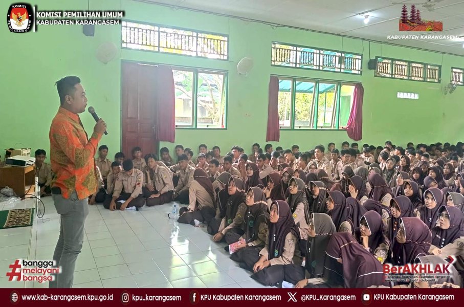 Amlapura, kab-karangasem.kpu.go.id - Menjadi Pemilih Cerdas Dengan '3S' , menjadi pemilih cerdas dengan cara Saring, Say No To Money Politics dan Segera Ke TPS menjadi kunci bagi pemilih pemula dalam Pemilu Tahun 2029 kedepan. Hal itu disampaikan oleh Anggota KPU Kabupaten Karangasem, Agus Nugroho Purwanto pada Sosialisasi Pendidikan Pemilih Kepada Pemilih Pemula di Madrasah Aliyah Negeri Karangasem, Jumat (13/2/2026). Pada kesempatan itu, Agus Nugroho bersama Staf, Ni Made Lestari diterima oleh Wakil Kepala Madrasah Bidang Humas, Munhar, S.Pd. yang juga memberikan dukungan terhadap agenda pendidikan pemilih yang digaungkan oleh KPU Kabupaten Karangasem. Setibanya di aula madrasah, Agus Nugroho berinteraksi dan menyampaikan materi terkait Menjadi Pemilih Cerdas dengan cara 3S, yakni Saring, Say No To Money Politics dan Segera Ke TPS kepada murid-murid. "Teman-teman nanti harus paham 3S ini, pertama Saring informasi agar tidak kena hoax, kedua Say No to Money Politics, ketiga Segera Ke TPS untuk mencoblos pada saat Pemilu 2029 nanti", ujar pria yang kerap disapa Agus Diablo itu. Sebelum mengakhiri materi, pria asal Demak itu mengingatkan untuk peduli pemilu di lingkungan sekitarnya, karena peran generasi muda utamanya Gen Z ini sangat penting untuk meningkatkan partisipasi pemilu dan menjadi tonggak utama penegak demokrasi di daerah. "Besok teman-teman juga harus menyampaikan kabar tentang pemilu kepada orang tua, saudara dan lingkungannya agar ikut memilih dan mensukseskan Pemilu 2029 kedepan", terang Agus Diablo. ....