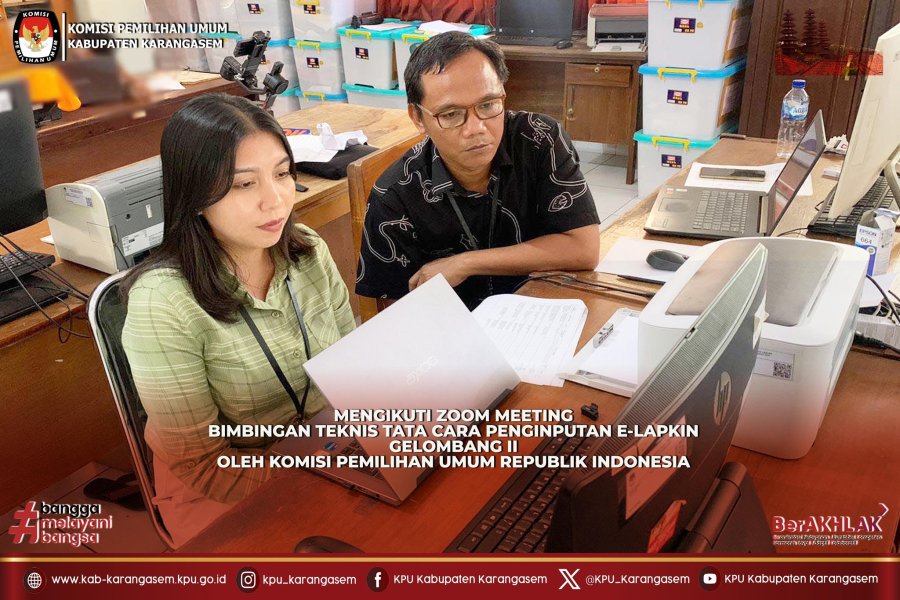 KPU Kabupaten Karangasem mengikuti Zoom Meeting Bimbingan Teknis Tata Cara Penginputan E-Lapkin Gelombang II yang diselenggarakan oleh Komisi Pemilihan Umum Republik Indonesia,