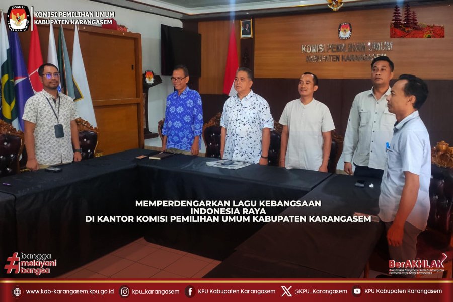 Hal ini dilaksanakan sebagai tindaklanjut dari Surat Kementerian Sekretariat Negara Republik Indonesia Nomor B-32/KSN/TU.OO/OI/2025 yang mewajibkan seluruh Jajaran Komisi Pemilihan Umum untuk memperdengarkan Lagu Kebangsaan Indonesia Raya dan naskah lainnya secara rutin di lingkungan kantor sebagai bentuk penguatan nilai-nilai kebangsaan.