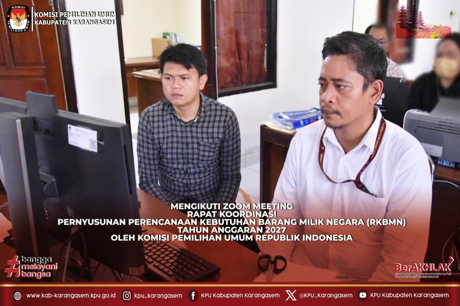 Komisi Pemilihan Umum Kabupaten Karangasem mengikuti Zoom Meeting Rapat Koordinasi Penyusunan Perencanaan Kebutuhan Barang Milik Negara (RKBMN) Tahun Anggaran 2027 yang diselenggarakan oleh Komisi Pemilihan Umum Republik Indonesia, Kamis (25/9).