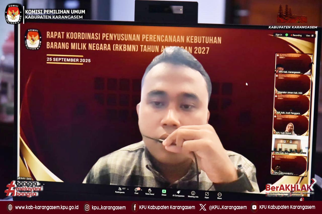 omisi Pemilihan Umum Kabupaten Karangasem mengikuti Zoom Meeting Rapat Koordinasi Penyusunan Perencanaan Kebutuhan Barang Milik Negara (RKBMN) Tahun Anggaran 2027