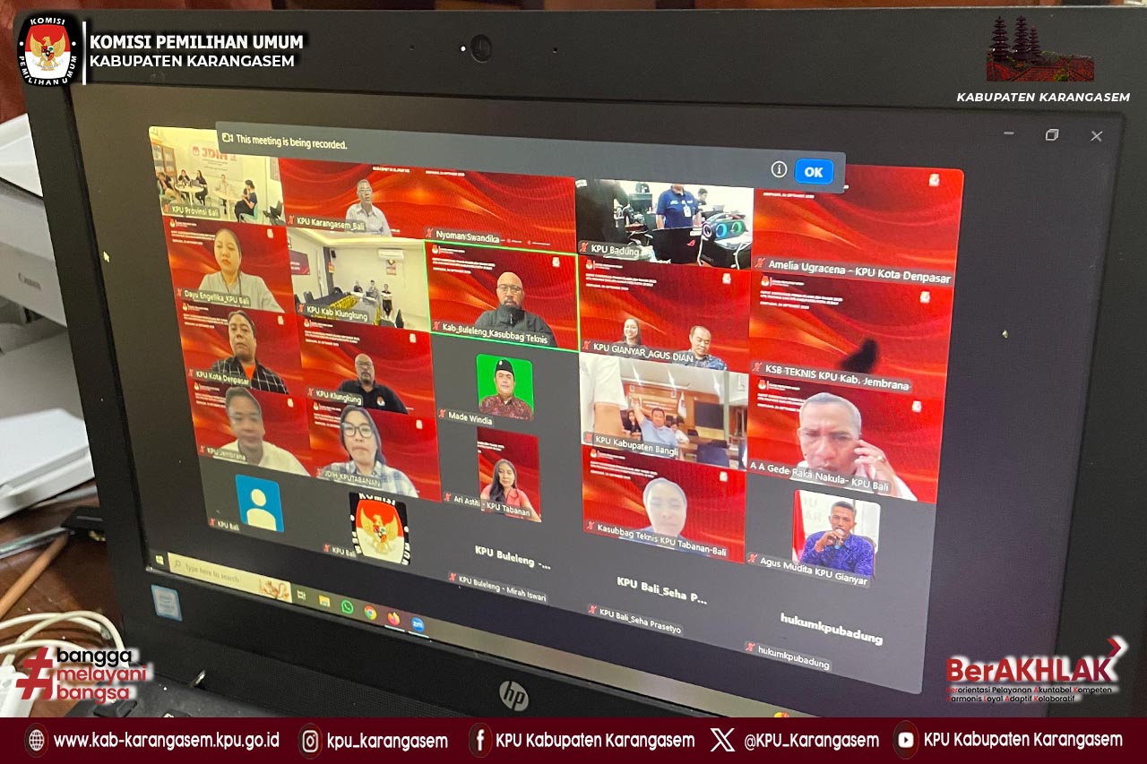 Komisi Pemilihan Umum Kabupaten Karangasem mengikuti Zoom Meeting Rapat Koordinasi Pengelolaan Jaringan Dokumentasi dan Informasi Hukum (JDIH) Tahun 2025 di Lingkungan KPU Provinsi dan KPU Kabupaten/Kota Se-Bali yang diselenggarakan oleh Komisi Pemilihan Umum Provinsi Bali, Jumat (26/9).