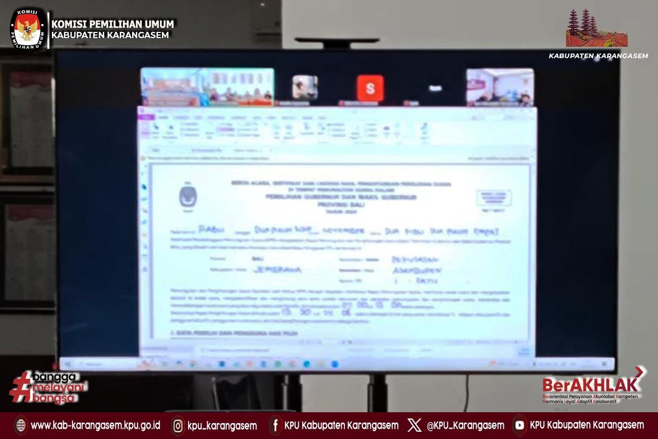 Plt. Sekretaris KPU Kabupaten Karangasem, I Gede Suwenda bersama Kepala Sub Bagian KPU Kabupaten Karangasem serta Staf, Puspita Shinta Dewi, Ni Komang Puspawati, Ni Made Vera Pardi, Ni Luh Eka Fitriani, dan Ni Luh Ade Riana Sintia Wardani hadir pada kesempatan tersebut secara daring.