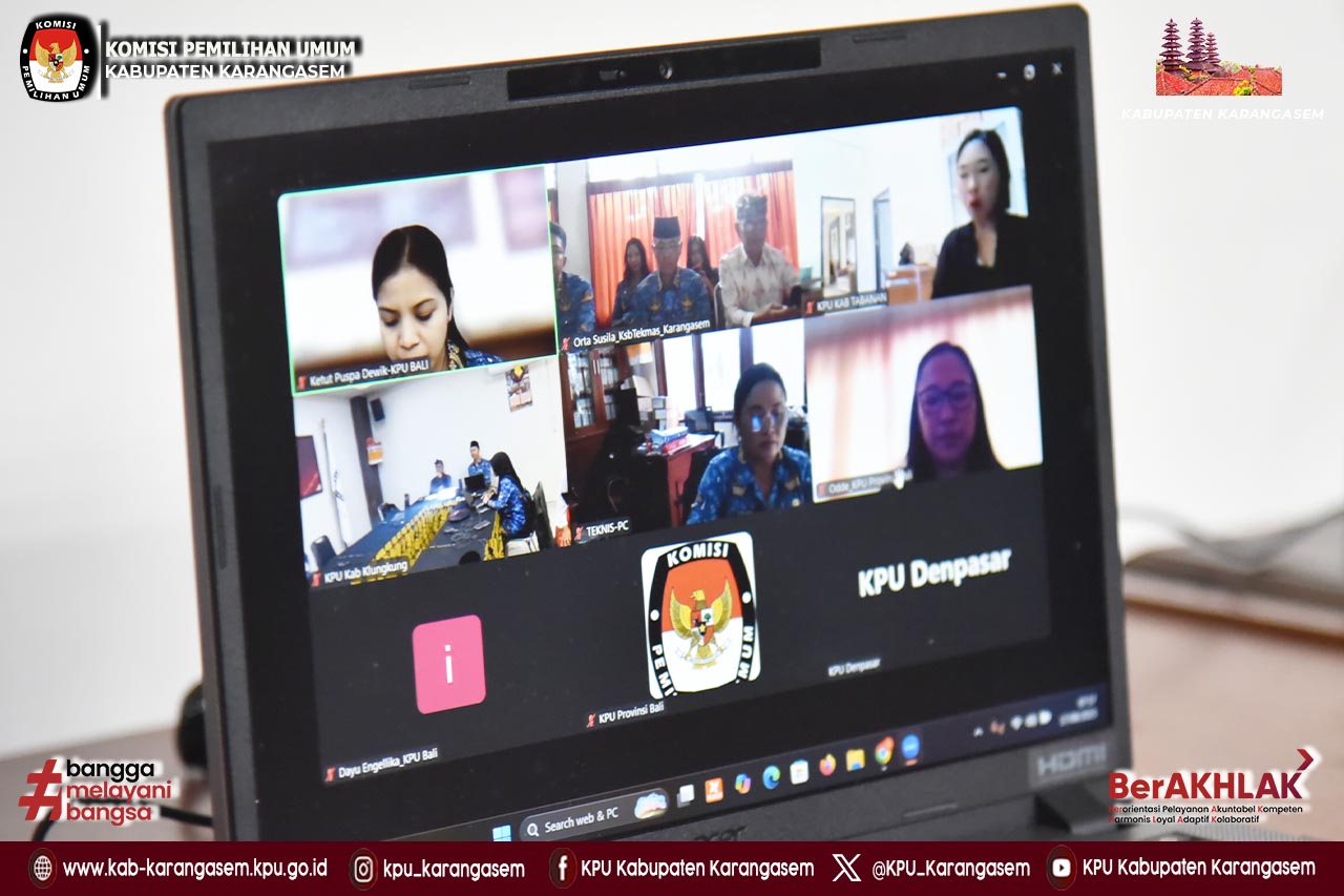 Komisi Pemilihan Umum Kabupaten Karangasem mengikuti Zoom Meeting Rapat Koordinasi Divisi Hukum dan Pengawasan bersama KPU Provinsi dan KPU Kabupaten/Kota Se-Bali, Minggu (17/8).