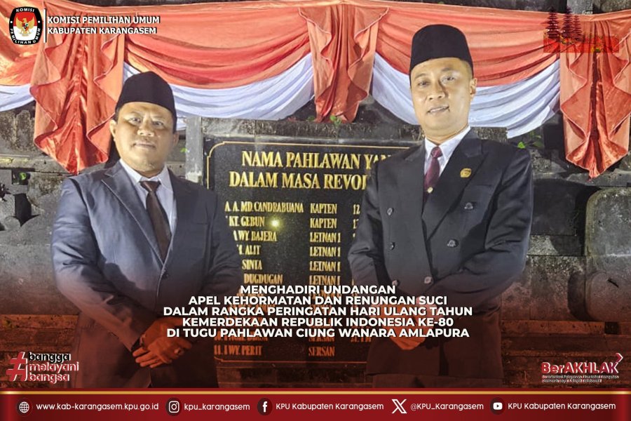 Komisi Pemilihan Umum Kabupaten Karangasem menghadiri kegiatan Penguatan Kelembagaan Gowes Kemerdekaan Memperingati Hari Ulang Tahun Kemerdekaan Republik Indonesia Ke-80 Bersama KPU Provinsi Bali dan KPU Kabupaten/Kota Se-Bali di Kota Denpasar, Jumat (15/8). Kegiatan diawali dengan sambutan dari Ketua KPU Provinsi Bali, I Dewa Agung Gede Lidartawan sekaligus menyampaikan arahan kepada peserta terkait alur kegiatan. Sepeda Santai dimulai pada titik awal dan akhir di Lapangan Parkir Kantor Komisi Pemilihan Umum Provinsi Bali. Setelah menikmati serunta bersepeda, peserta turut berpartisipasi dalam serangkaian lomba yang meningkatkan kekompakan dan kemeriahan serta ramah tamah dengan jajaran KPU Provinsi dan KPU Kabupaten/Kota lainnya. Pada kesempatan itu, Ketua KPU Kabupaten Karangasem, I Putu Darma Budiasa bersama Anggota, Agus Nugroho Purwanto, I Kadek Sukara, Plt. Sekretaris KPU Kabupaten Karangasem, I Gede Suwenda, Kepala Sub Bagian Partisipasi, Hubungan Masyarakat dan SDM, I Gede Wira Hadibrata Putra, Kepala Sub Bagian Perencanaan, Data dan Informasi, I Gusti Agung Bagus Prihartana beserta jajaran Staf KPU Kabupaten Karangasem berpartisipasi dalam kegiatan tersebut. Berikut link Video Menghadiri Gowes Kemerdekaan HUT Republik Indonesia Ke-80 Bersama KPU Se-Bali, Jumat (15/8)