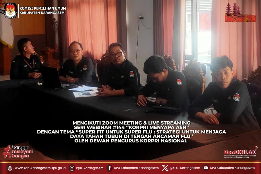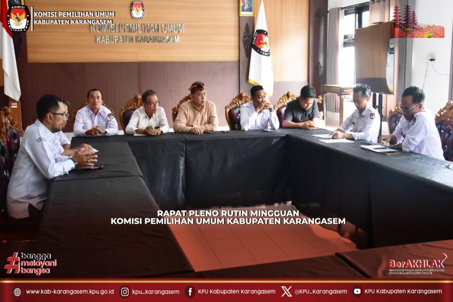 Komisi Pemilihan Umum Kabupaten Karangasem melaksanakan Rapat Pleno Rutin Mingguan di Ruang Rapat KPU Kabupaten Karangasem, Senin (19/1). Rapat dibuka oleh Anggota KPU Kabupaten Karangasem, I Gede Budana sekaligus menyampaikan kepada Anggota, Plt. Sekretaris dan Kepala Sub Bagian KPU Kabupaten Karangasem untuk menyampaikan kegiatan yang telahh dilaksanakan dan direncanakan dalam minggu ini. "Terima kasih kepada semuanya untuk kehadirannya pagi ini, selanjutnya kepada Plt. Sekretaris dan Kepala Sub Bagian dipersilahkan untuk menyampaikan kegiatan yang sudah dilaksanakan dan diikuti, sekaligus memberikan tambahan apabila ada yang perlu disampaikan", ujar Budana. Kegiatan dilanjutkan dengan pembahasan terkait kegiatan yang sudah dilaksanakan oleh Plt. Sekretaris KPU Kabupaten Karangasem, I Gede Suwenda yakni pelaporan LHKPN bagi Komisioner, Rapat Evaluasi dan Koordinasi Internal Divisi Sosialisasi, Pendidikan Pemilih, Partisipasi Masyarakat dan SDM di Rumah Makan Chic n Cozy Amlapura, Liputan Podcast Optimis KPU Kabupaten Karangasem terkait Peran Perempuan dalam Demokrasi, melaksanakan koordinasi dengan Badan Kesatuan Bangsa dan Politik Kabupaten Karangasem, mengikuti Zoom Meeting & Live Streaming Youtube Seri Webinar #144 “KORPRI MENYAPA ASN” dengan Tema: “Super Fit untuk Super Flu: Strategi Menjaga Daya Tahan Tubuh di Tengah Ancaman Flu” yang digelar oleh Dewan Pengurus KORPRI Nasional, menerima koordinasi Satintelkam Polres Karangasem, membuat flyer terkait Cek DPT Online, dan kegiatan rutin lainnya. Pada kesempatan itu, Anggota KPU Kabupaten Karangasem Divisi Perencanaan, Data dan Informasi, Agus Nugroho Purwanto menyampaikan terkait pelaksanaan kegiatan yakni membantu kegiatan divisi lain, mengawal penyusunan LKjIP, Mengikuti Zoom Meeting SAKIP pada Selasa (20/1/2026). Divisi Sosialisasi Pendidikan Pemilih, Partisipasi Masyarakat dan SDM, I Kadek Sukara yang ditambahkan oleh Kepala Sub Bagian Partisipasi, Hubungan Masyarakat dan SDM, I Gede Wira Hadibrata Putra menyampaikan kegiatan yang direncanakan yakni audiensi dengan Dinas Pendidikan, Kepemudaan dan Olahraga Kabupaten Karangasem, Pendidikan Pemilih melalui flyer dan konten TikTok, serta mempersiapkan audiensi dengan Kepala Kejaksaan, Dandim 1623 serta Kapolres Karangasem. Kemudian melalui Divisi Hukum dan Pengawasan, I Gede Budana menyampaikan Divisi Hukum dan Pengawasan berfokus pada penyelesaian SK SOP PPID dan SOP Produk Hukum lainnya serta mengusulkan rak buku untuk perpustakaan. Dilanjutkan dengan Divisi Teknis Penyelenggaraan, I Wayan Suartika yang menyampaikan kegiatan minggu ini yakni membantu kegiatan Divisi/Sub Bagian lainnya yang membutuhkan kontribusi. Menjelang akhir rapat, pria yang juga mantan wartawan itu menuturkan untuk berdoa bersama memohon kesehatan dan kelancaran dalam melaksanakan kegiatan.