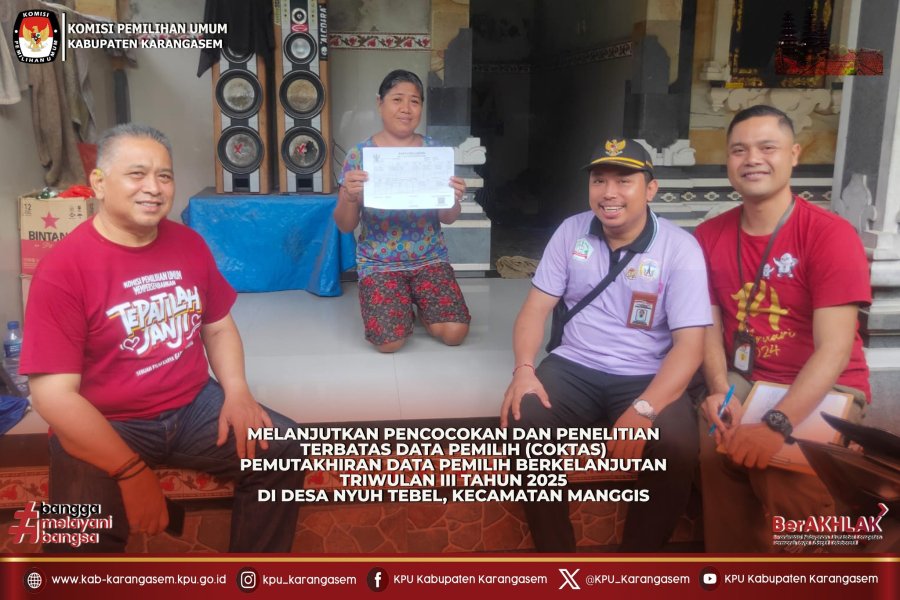 Komisi Pemilihan Umum Kabupaten Karangasem mengikuti Zoom Meeting Rapat Koordinasi Tindak Lanjut Surat Ketua Komisi Pemilihan Umum Republik Indonesia Nomor: 1109/PL.01-SD/06/2025 yang diselenggarakan oleh KPU Provinsi Bali, Jumat (18/7).