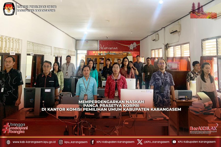 Anggota KPU Kabupaten Karangasem, Agus Nugroho Purwanto, I Wayan Suartika bersama Staf KPU Kabupaten Karangasem, I Gede Supartayasa dan I Wayan Gede Purwa Darmaja hadir pada kegiatan tersebut.