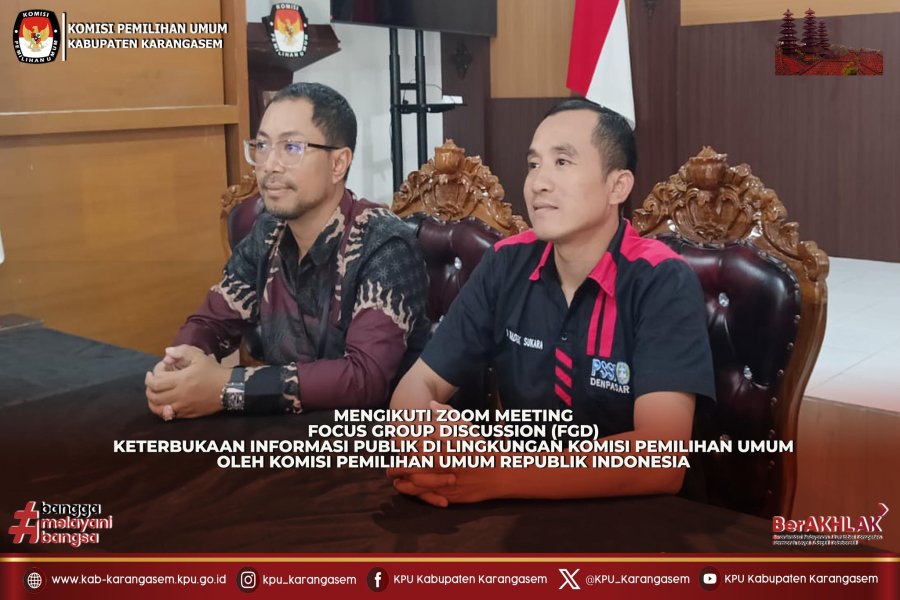 Komisi Pemilihan Umum Kabupaten Karangasem mengikuti Zoom Meeting Focus Group Discussion (FGD) Keterbukaan Informasi Publik di Lingkungan Komisi Pemilihan Umum yang diselenggarakan oleh Komisi Pemilihan Umum Republik Indonesia, Selasa (23/9).