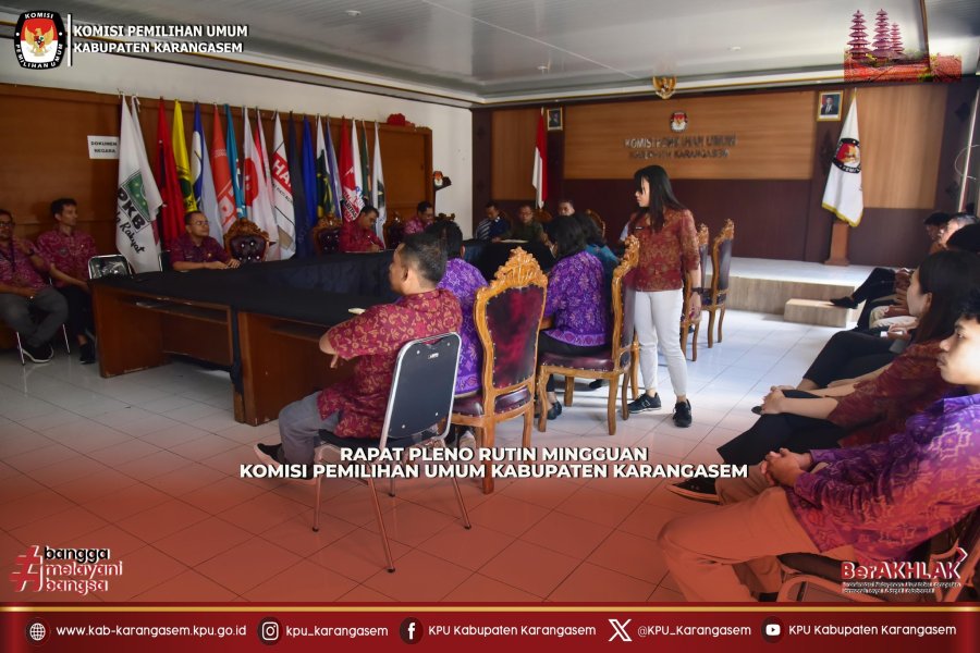 Amlapura, kab-karangasem.kpu.go.id - Komisi Pemilihan Umum Kabupaten Karangasem melaksanakan Rapat Pleno Rutin Mingguan di Ruang Rapat KPU Kabupaten Karangasem. Kegiatan dilakukan media koordinasi, perencanaan serta sarana evaluasi dan sinkronisasi kinerja. Selasa (3/2/2026). Rapat pleno dipimpin oleh Ketua KPU Kabupaten Karangasem, I Putu Darma Budiasa diikuti oleh para Anggota, Plt. Sekretaris, Kepala Sub Bagian dan seluruh Staf KPU Kabupaten Karangasem. Diawali dengan sambutan dan arahan Ketua KPU Kabupaten Karangasem, masing-masing Ketua Divisi menyampaikan laporan kegiatan yang sudah dilaksanakan serta rencana kegiatan yang akan dilaksanakan seminggu kedepan. Melalui forum ini, KPU Kabupaten Karangasem mengevaluasi pelaksanaan tugas dan kegiatan yang sudah dan belum dilaksanakan, utamanya terkait perjanjian kerja sama antar instansi, audiensi dengan Kepala Kejaksaan Negeri Karangasem dan Dandim 1623 Kabupaten Karangasem. Tak lupa disampaikan kepada jajaran untuk menyelesaikan Laporan SPT Tahunan Tahun 2025 dan SKP Triwukan IV dan Tahunan Tahun 2025 agar dapat menjadi laporan, serta menjaga kedisiplinan dan etika pada jam kerja maupun jam istirahat kerja. Pada akhir rapat pleno rutin, seluruh peserta berdoa mengharap seluruh agenda tahapan maupun non tahapan dapat terlaksana dan diberkahi dengan keberhasilan, keselamatan serta kesehatan dalam setiap kegiatan.