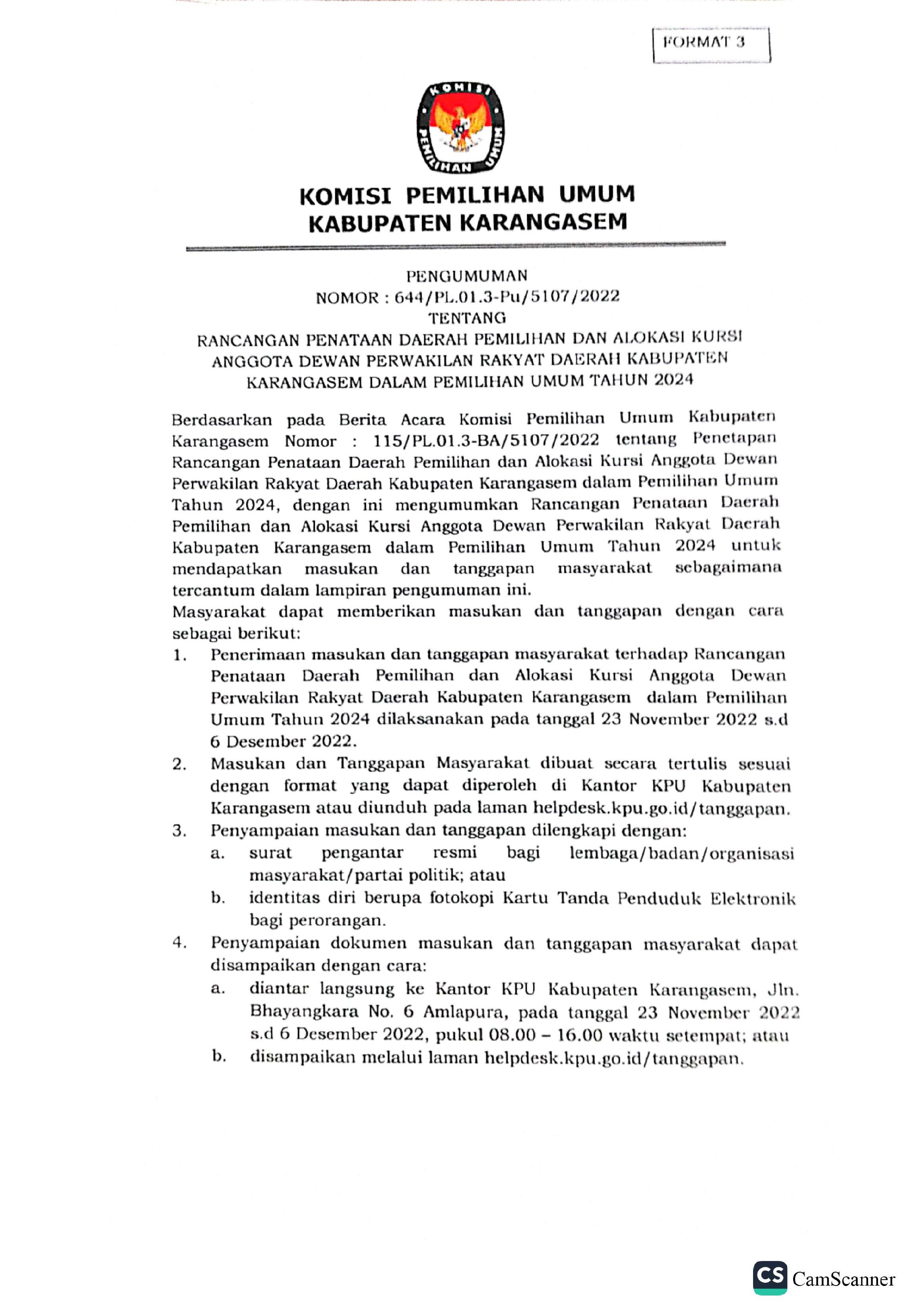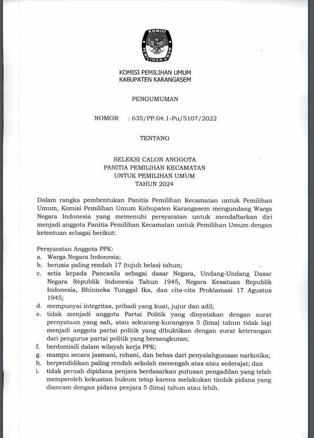 Pengumuman dan formulir dapat diunduh melalui website KPU Karangasem di https://kab-karangasem.kpu.go.id/.../pengumuman-seleksi...