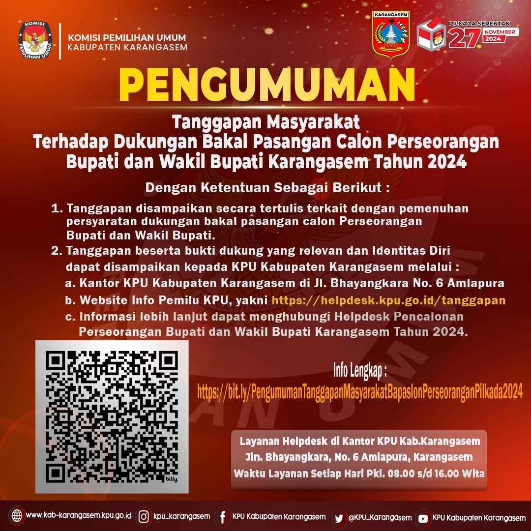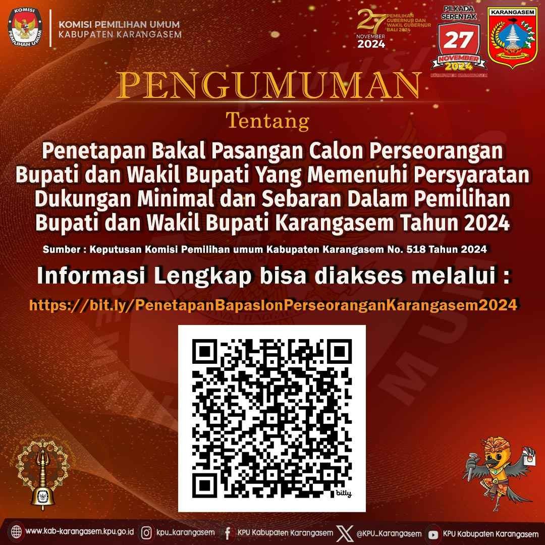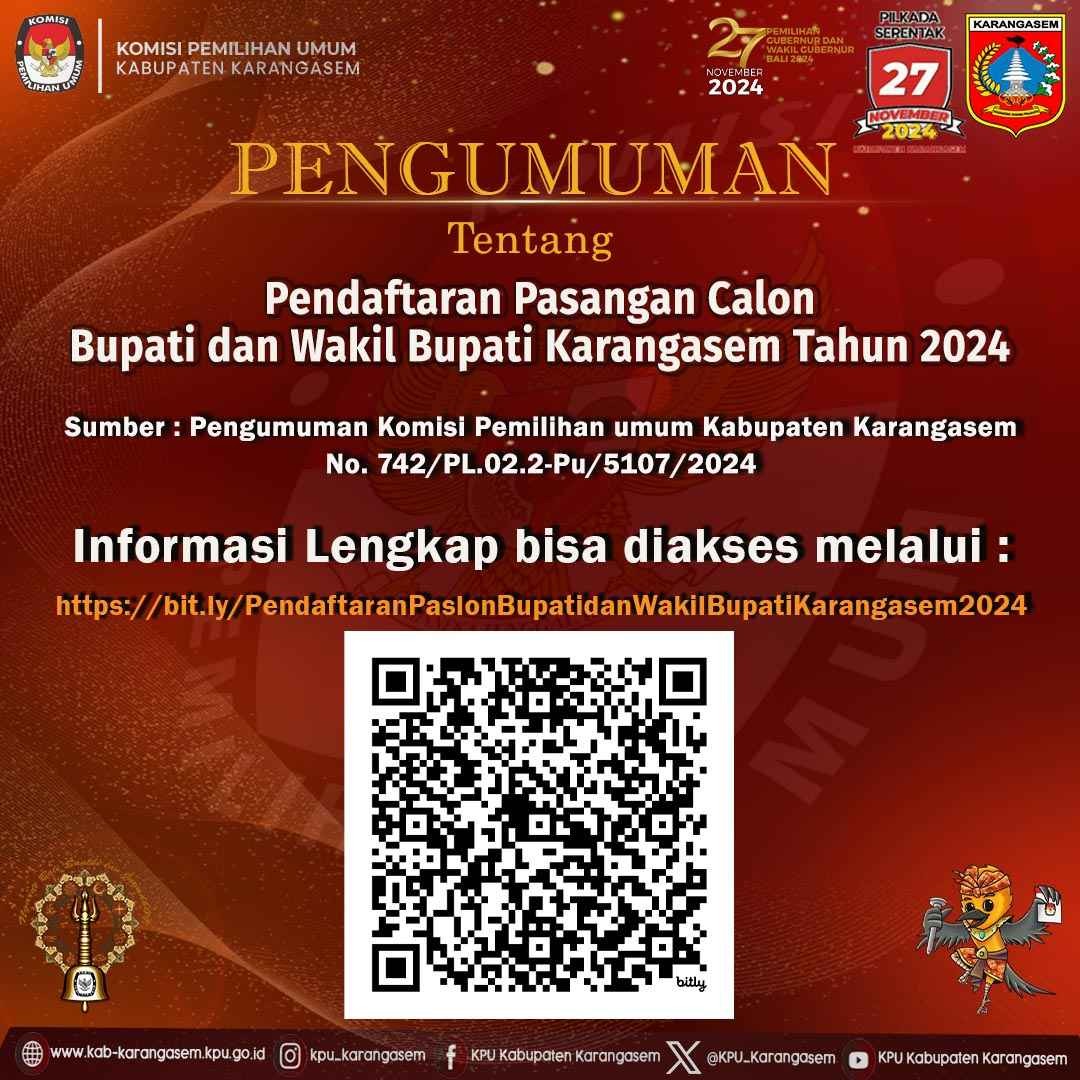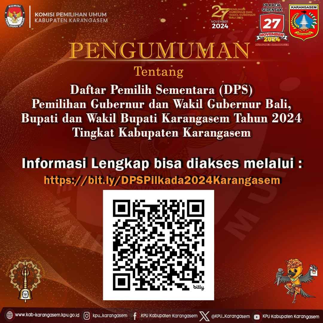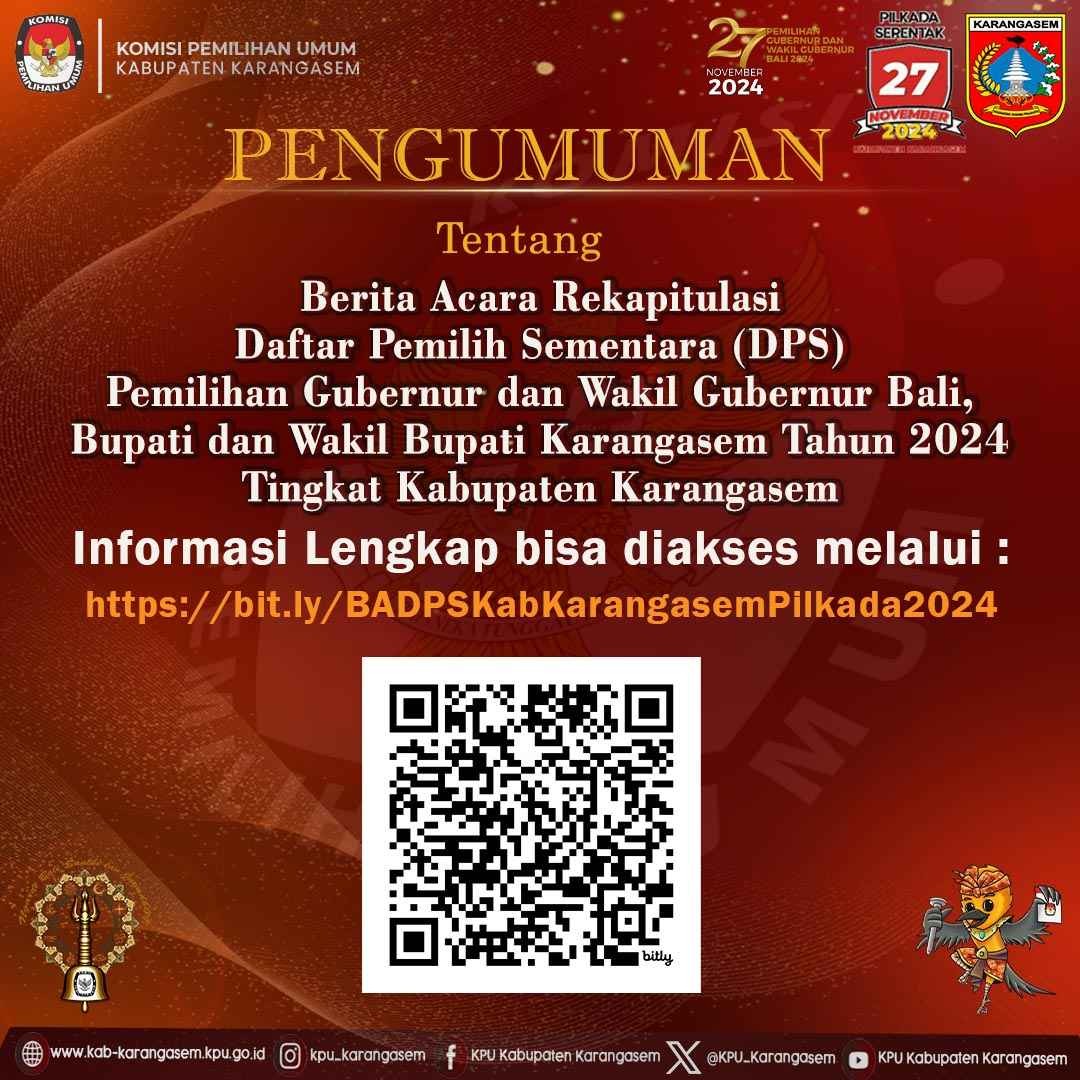 Informasi selengkapnya dapat diakses melalui link https://bit.ly/BADPSKabKarangasemPilkada2024 atau dengan scan QR Code pada gambar.